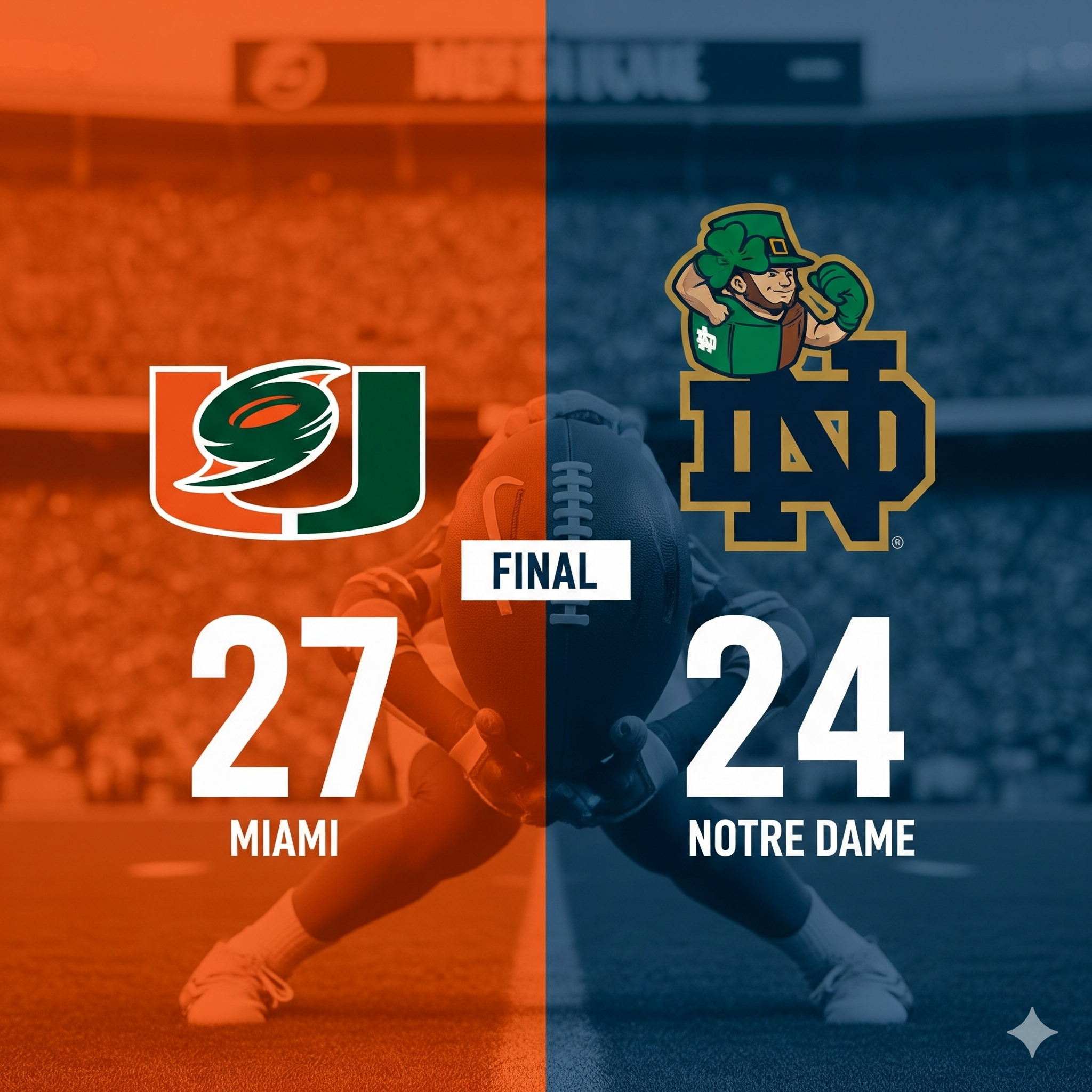 Miami Beat Notre Dame, 27–24